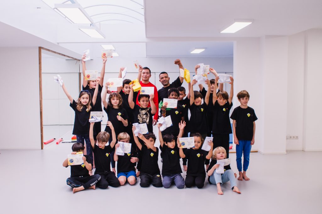 Wanneer iemand over zijn/haar band praat, weet je waarschijnlijk waar ze het over hebben. Een band is binnen bijna iedere vechtsport een indicatie en symbool voor hoe toegewijd men is. Een witte band symboliseert dat iemand nieuw is, een gele band dat iemand de basisvaardigheden onder de knie heeft en niet volledig nieuw meer is. Naarmate uw kind groeit en in staat is verschillende zelfverdedigingstechnieken te leren en toe te passen, krijgt hij/zij een rode band. Groene en blauwe banden zijn voor de kinderen die hun vaardigheden blijven uitbreiden en verfijnen op een steeds hoger niveau. Een paarse band betekent overschakeling naar een hoger niveau met meer geavanceerde bewegingen. Een bruine band is een belangrijke mijlpaal: de band die voorafgaat aan de begeerde zwarte band. Een kind met een zwarte band begrijpt de fysieke en mentale lessen van hun gekozen vaardigheid. Ze zijn vaardig genoeg om zichzelf te verdedigen, ongeacht de situatie waarmee ze te maken kunnen krijgen. Als een kind toegewijd is en twee tot drie keer per week de les volgt, kunnen ze doorgaans in ongeveer vijf jaar een zwarte band verdienen en behalen. Het kan echter minder tijd kosten als het kind extreem ijverig is, of juist langer wanneer het kind met veeluitdagingen worstelt.